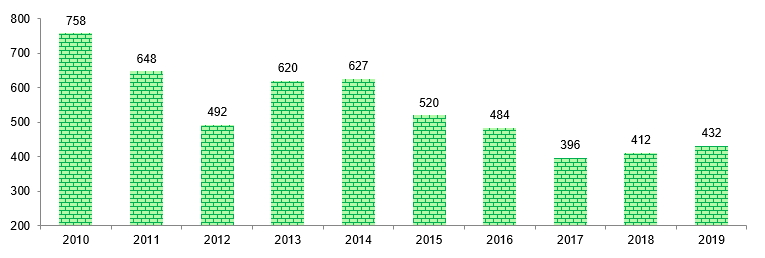 Увод у эксплуатацыю жылых дамоў на 1000 чалавек насельніцтва