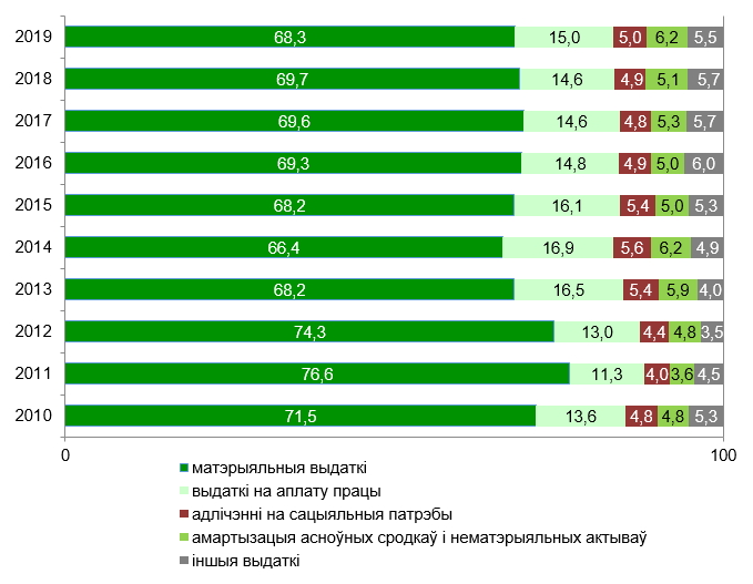 Структура выдаткаў на вытворчасць і рэалізацыю прадукцыі (работ, паслуг) арганізацый