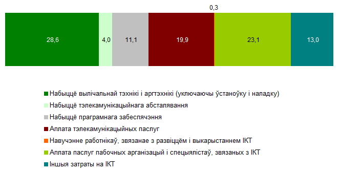 Структура затрат агранізацый на інфармацыйна-камунікацыйныя тэхналогіі ў 2018 годзе