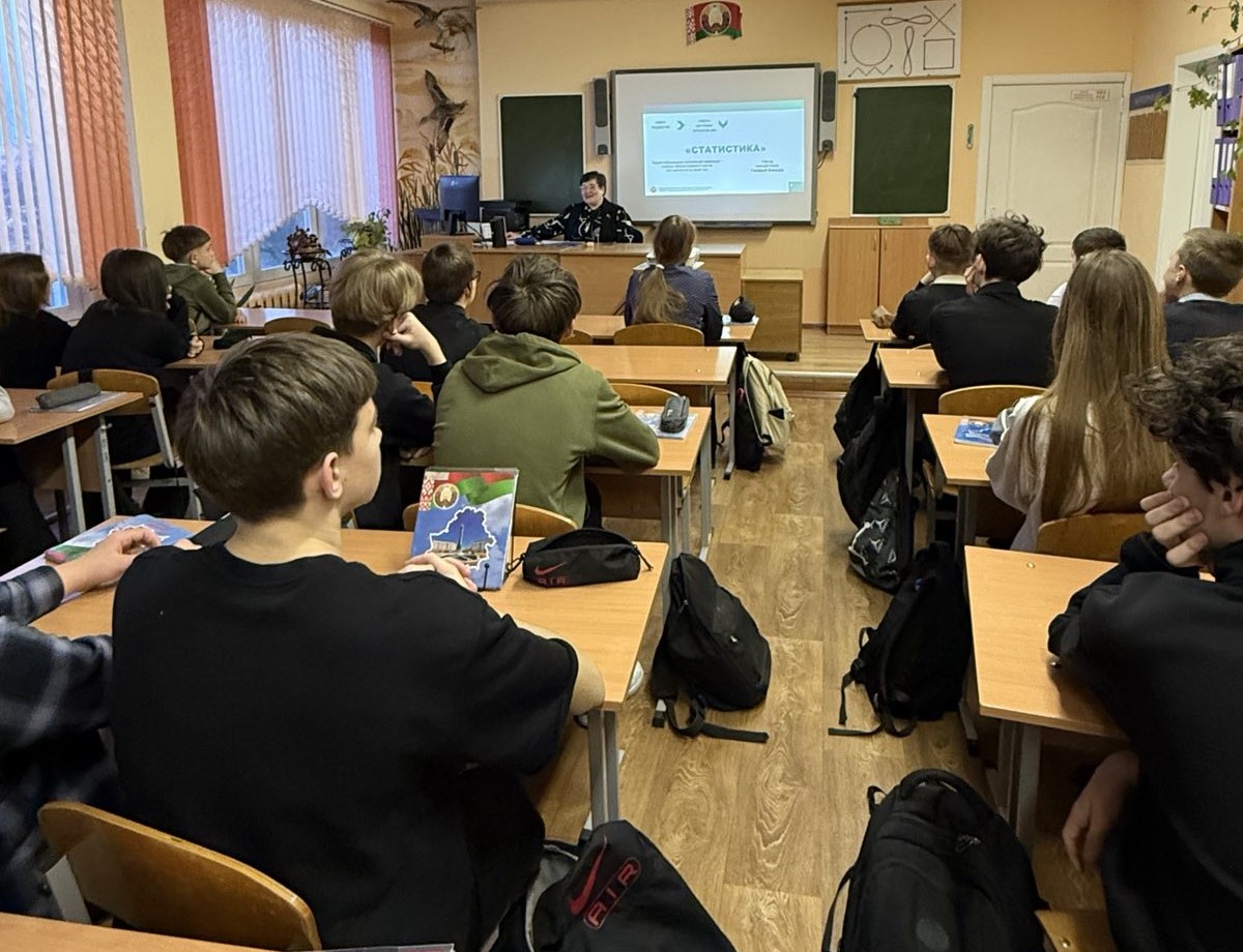Начальник отдела статистики Волковысского района Алла Александровна Гаргун провела встречу с учащимися 8 «Б» класса государственного учреждения образования «Гимназия №2 г. Волковыска» в рамках проекта «Моя статистика». Руководитель рассказала школьникам о работе статистической службы, важности цифр в жизни общества и особенностях профессии статистика. Ребята узнали, как собираются данные для официальных отчетов и где можно получить профильное образование. Встреча прошла в формате открытого диалога, где каждый смог задать интересующие вопросы о карьере в сфере статистики.
